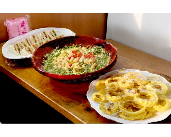 今天的餐點:和風沙拉,洋蔥圈,總匯三明治